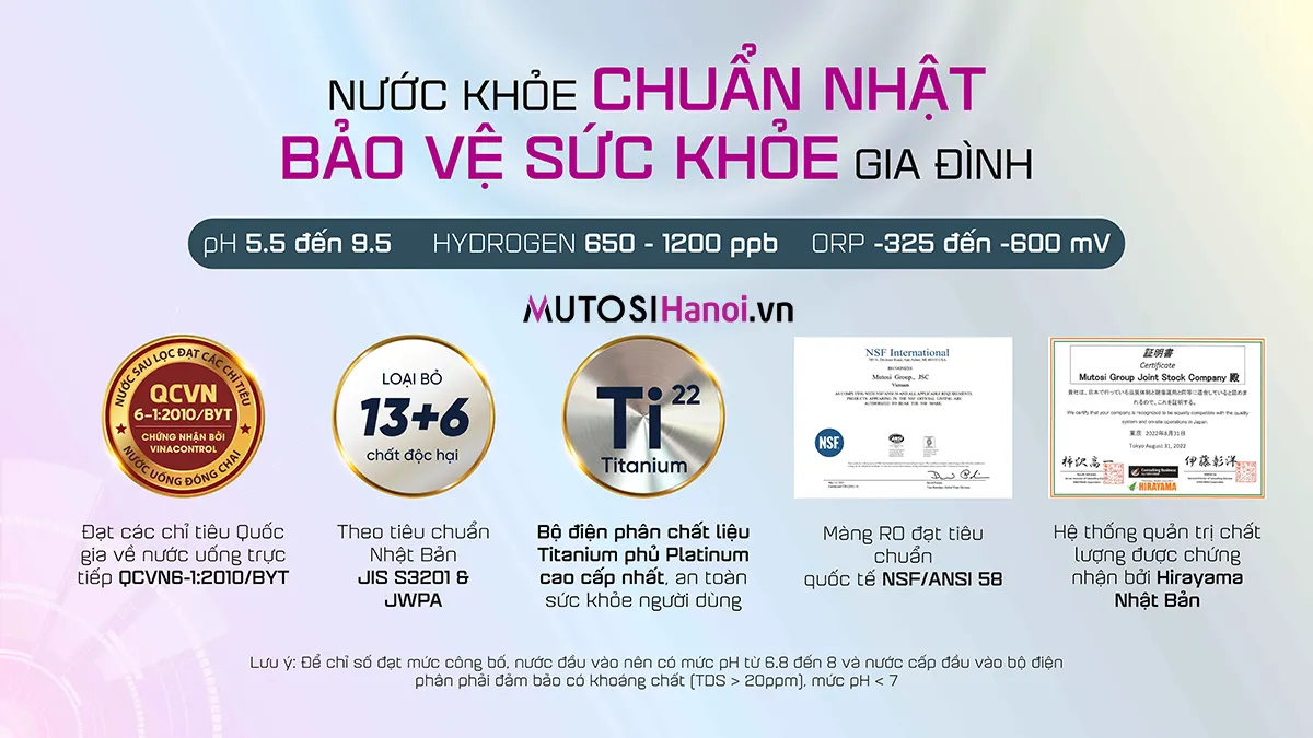 MÁY LỌC NƯỚC ION KIỀM HYDROGEN MUTOSI MP-T88 ĐẠT TIÊU CHUẨN CHẤT LƯỢNG TRONG NƯỚC VÀ QUỐC TẾ