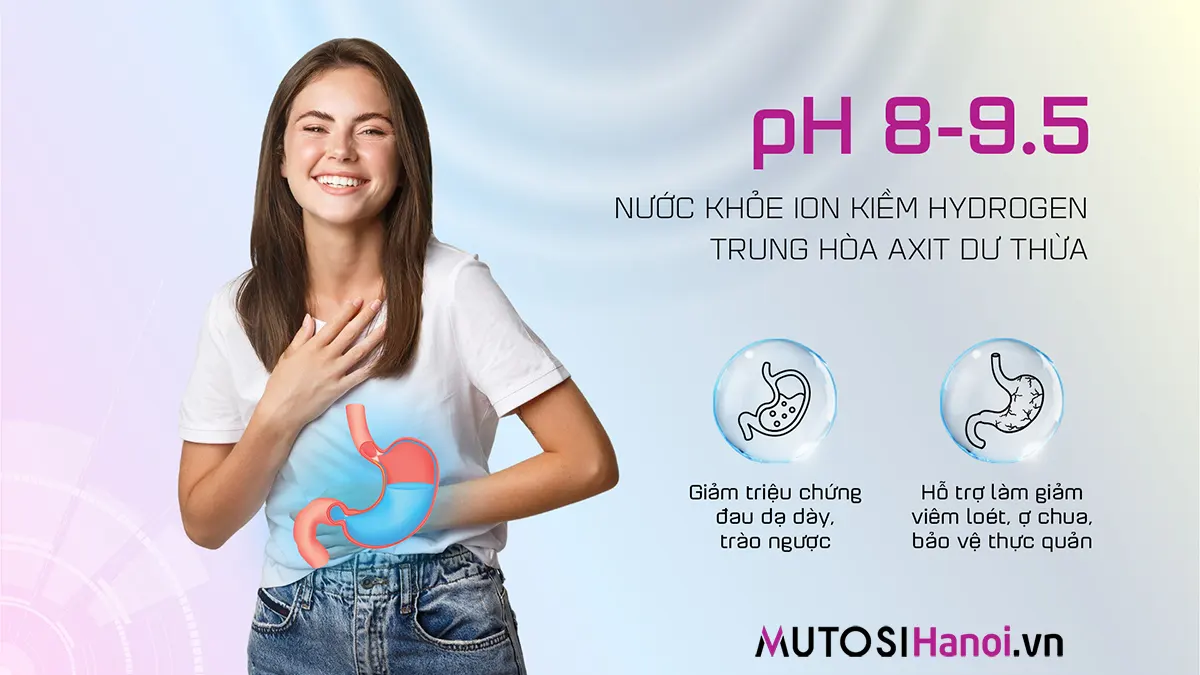 - Nước ion kiềm hydrogen, được sản xuất từ máy lọc MP-T888, không chỉ giúp giảm thiểu các triệu chứng khó chịu mà còn bảo vệ niêm mạc tiêu hóa, nâng cao sức đề kháng cho cả gia đình. Đưa nước ion kiềm vào thói quen hàng ngày là một giải pháp hiệu quả để hỗ trợ sức khỏe dạ dày.