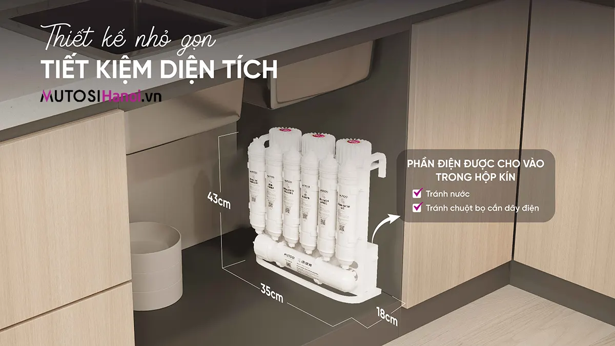 - Về kích thước: nhỏ gọn hơn các dòng máy khác với hệ thống lõi được sắp xếp khoa học và kết cấu cốc lọc thô dễ dàng đóng mở để thuận tiện, tối ưu hơn khi có thể tự thay lõi tại nhà