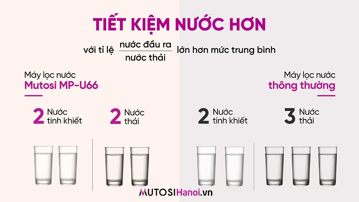 Tỷ lệ thu hồi nước tinh khiết cao
